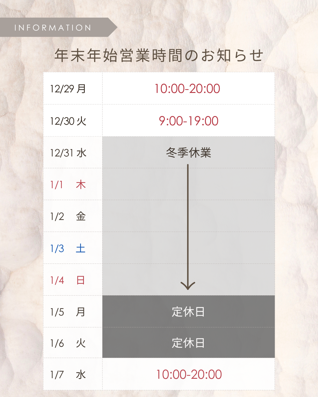 2025 1115 年末年始営業時間のお知らせ 年末年始営業時間のお知らせです。 代表眞仁田は29(月)MANITA KAWAGOE、30(火)MANITA本店出勤です。 MANITAセミナー 前の記事